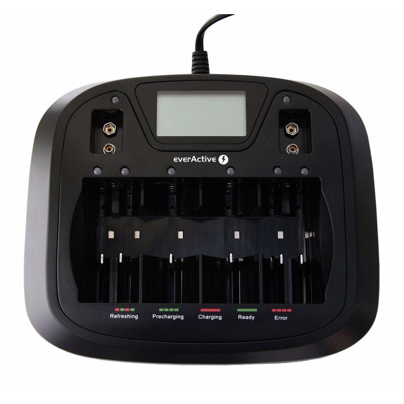 Carregador de pilhas universal EverActive NC-900U - 8x AAA/AA/C/D/9V - Visor LCD