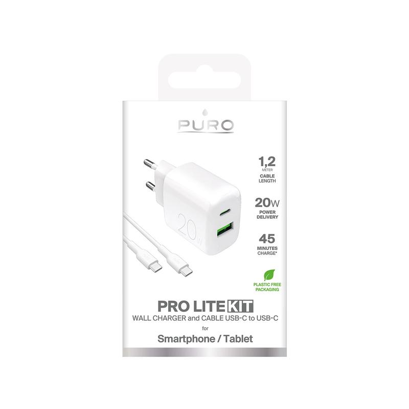 Carregador de porta dupla Puro Prolite 20W com cabo USB-C - Carregamento versátil para todos os seus dispositivos