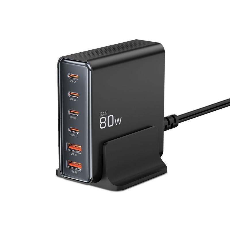 Carregador de secretária Tech-Protect DC80W GaN de 6 portas com 4x PD USB-C, 2x QC 3.0 USB-A - 80W