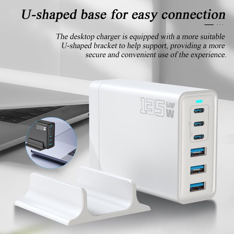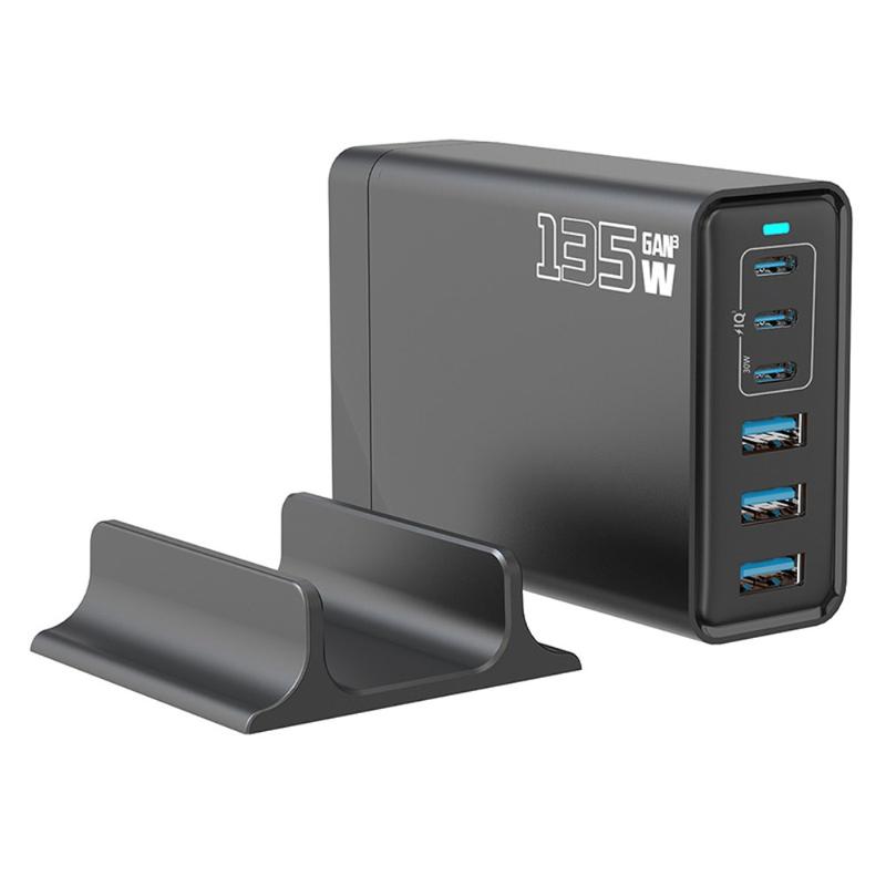 Carregador de secretária GaN de 135W / Estação de carregamento de alta velocidade com 6 portas - 3x USB-C, 3x USB-A