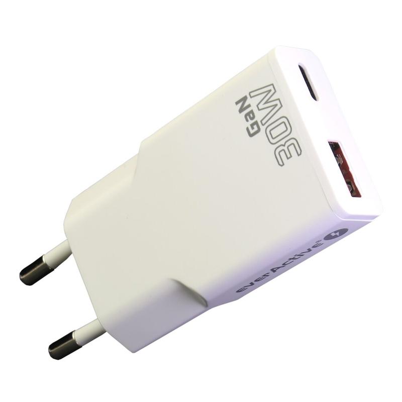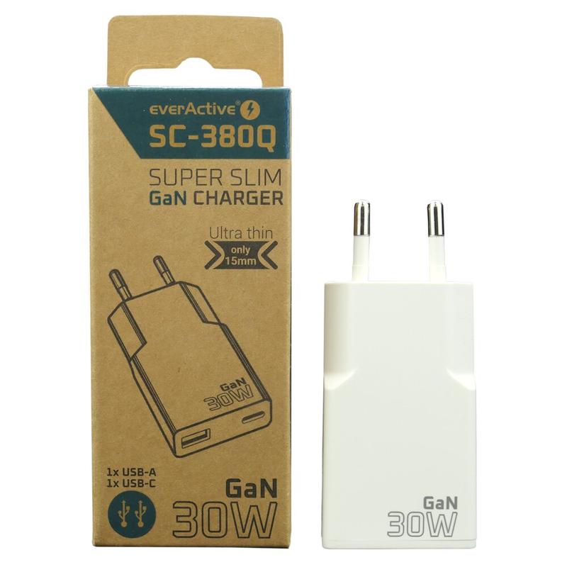 Carregador de parede everActive SC-380Q GaN Super Slim 30W com portas USB QC3.0 e USB-C PD