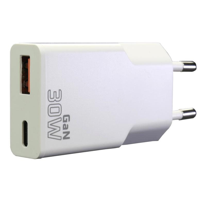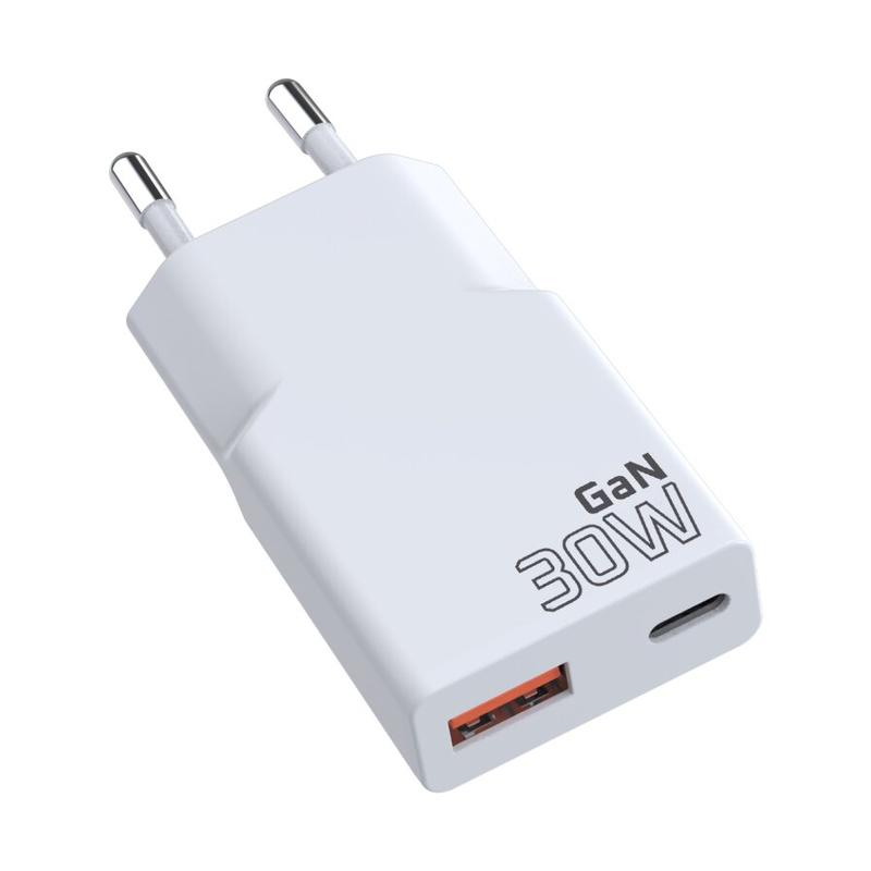 Equipado com uma porta USB-C PD e uma porta USB QC3.0, o carregador fornece uma potência de saída total de 30W. Pode carregar dois dispositivos ao mesmo tempo - smartphones, tablets, câmaras, ultrabooks ou power banks - com velocidade e fiabilidade.