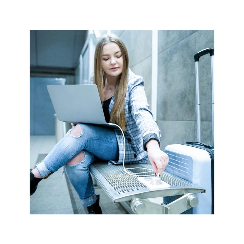 - Trabalho e viagens: Mantenha o seu MacBook ou portátil carregado durante as reuniões ou enquanto trabalha remotamente, com um carregador compacto que cabe facilmente na sua mala.