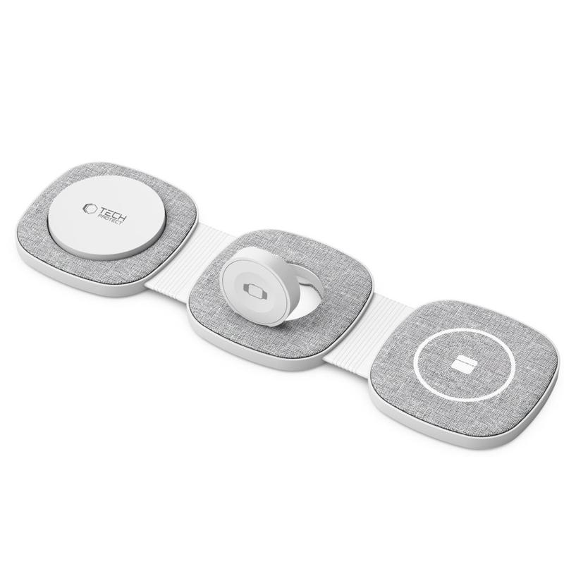 Tech-Protect QI15W-A32 Carregador sem fios dobrável 3 em 1 compatível com MagSafe magnético para iPhone, Apple Watch, AirPods - 15W