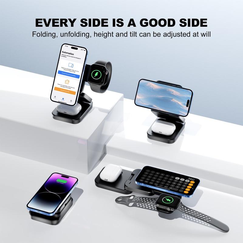 Carregador magnético sem fios A390 3 em 1 - Carregamento rápido de 15W e suporte dobrável