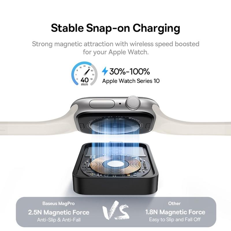 Carregador magnético sem fios Baseus MagPro para Apple Watch - 2.5W, Tipo C