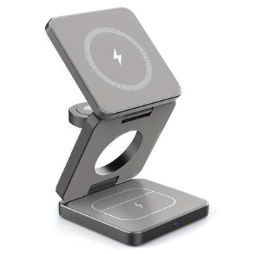 Carregador magnético sem fios dobrável 3 em 1 de bolso - Estação de carregamento rápido para iPhone, relógio e auriculares