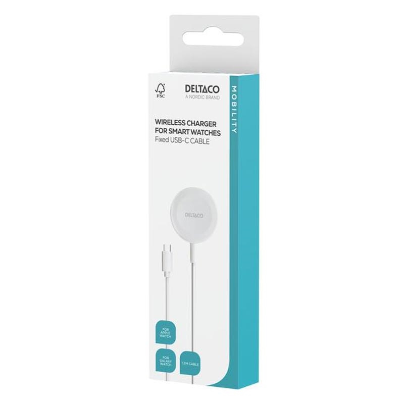 - Carregador sem fios Deltaco para Apple Watch e Galaxy Watch