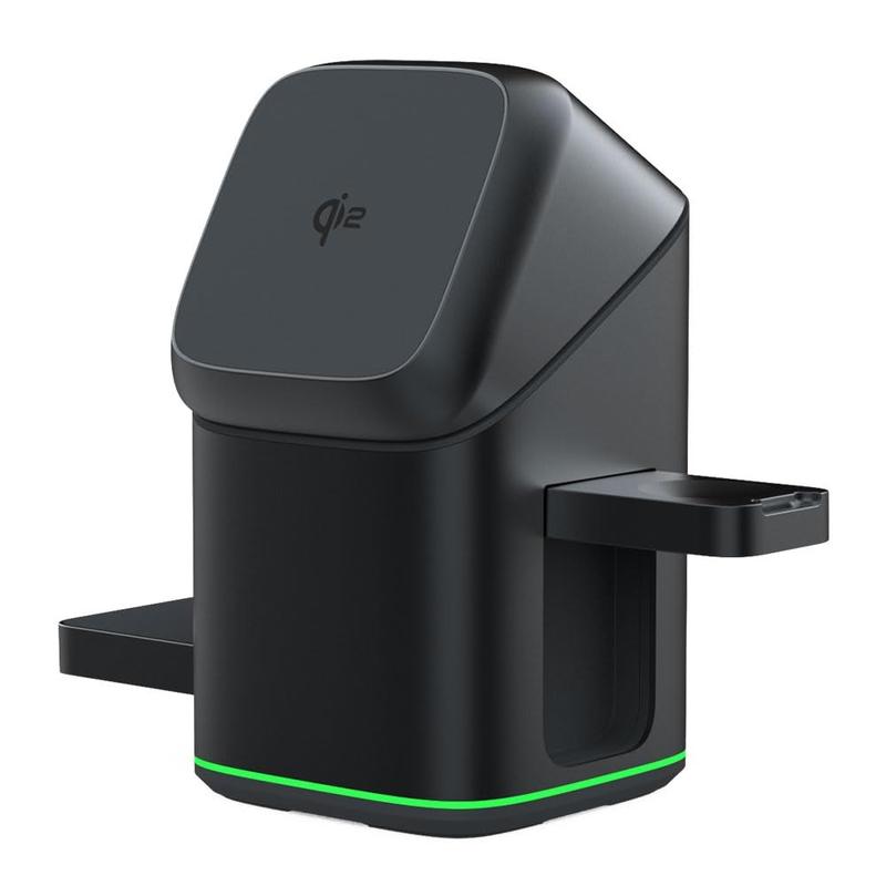 - Base de carregamento sem fios 3 em 1 para telemóvel, relógio e auriculares