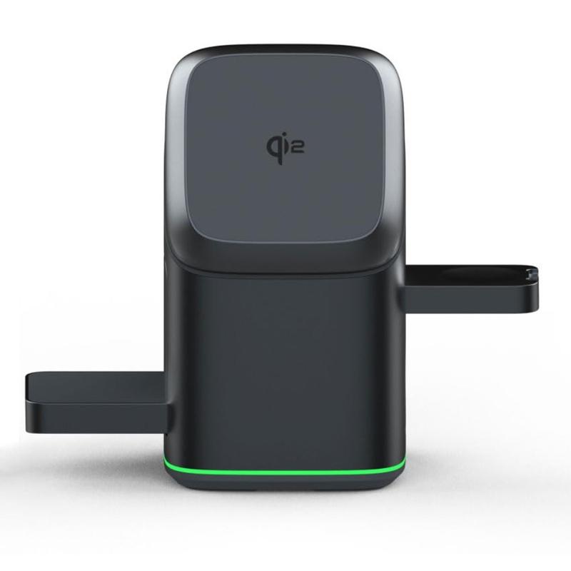 Base de carregamento sem fios Qi2 3 em 1 V23 - Carregador MagSafe com rotação de 180 para iPhone, Apple Watch e AirPods