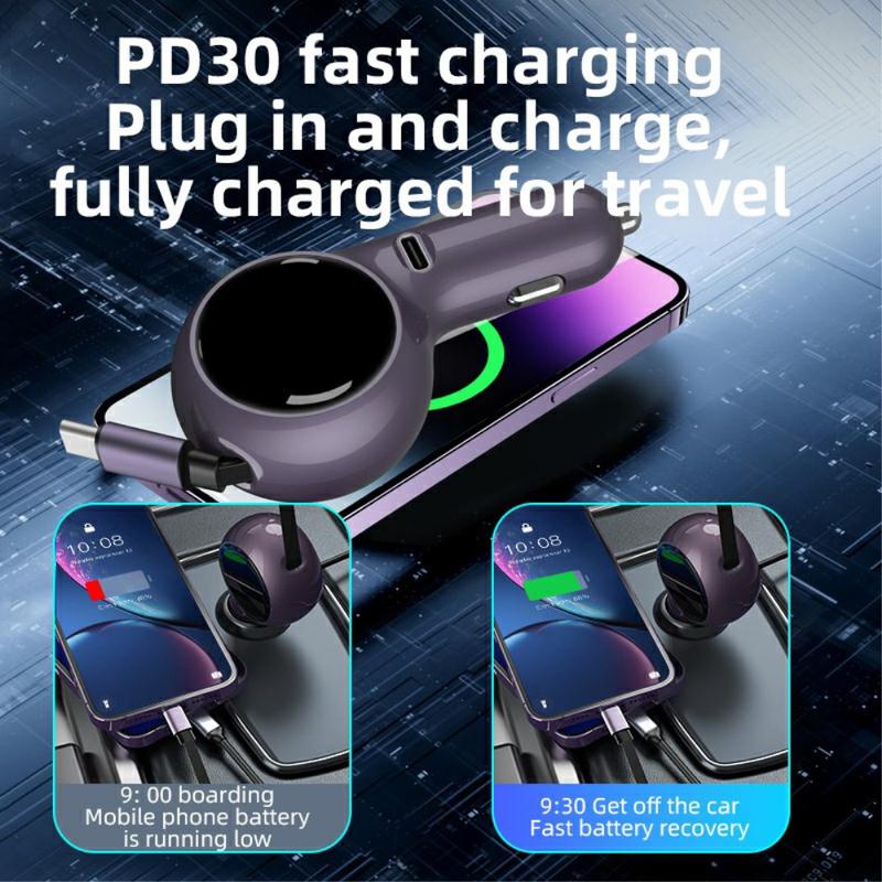 Carregador de automóvel de carregamento rápido com cabo retrátil USB-C K2