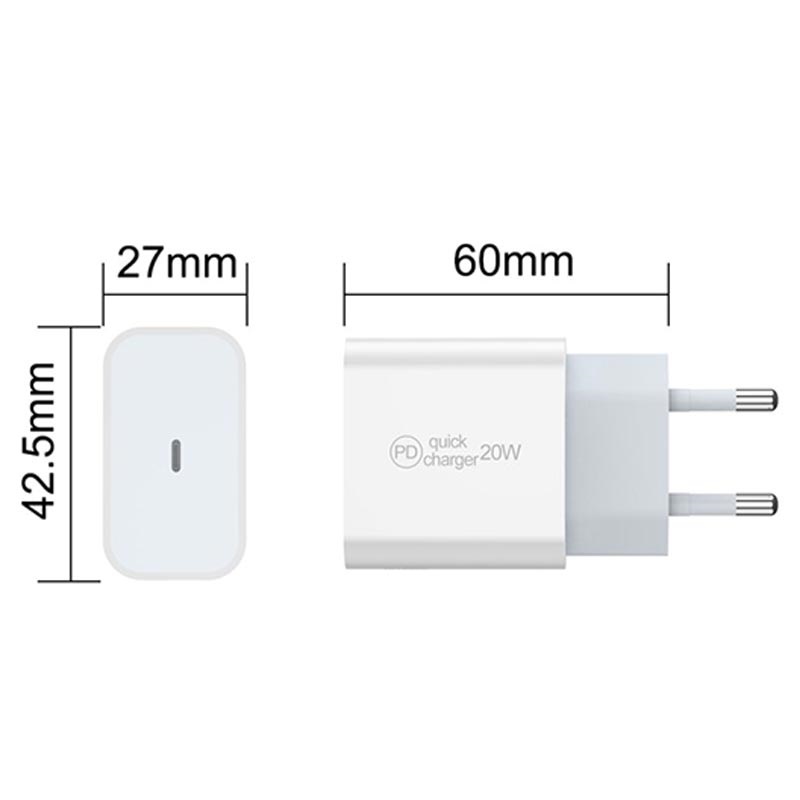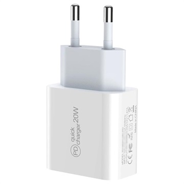 Carregador de parede com fornecimento de energia USB-C - 5V/3 A, 9V/2,22A, 12V/1,67A, 20W
