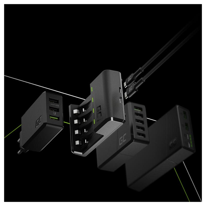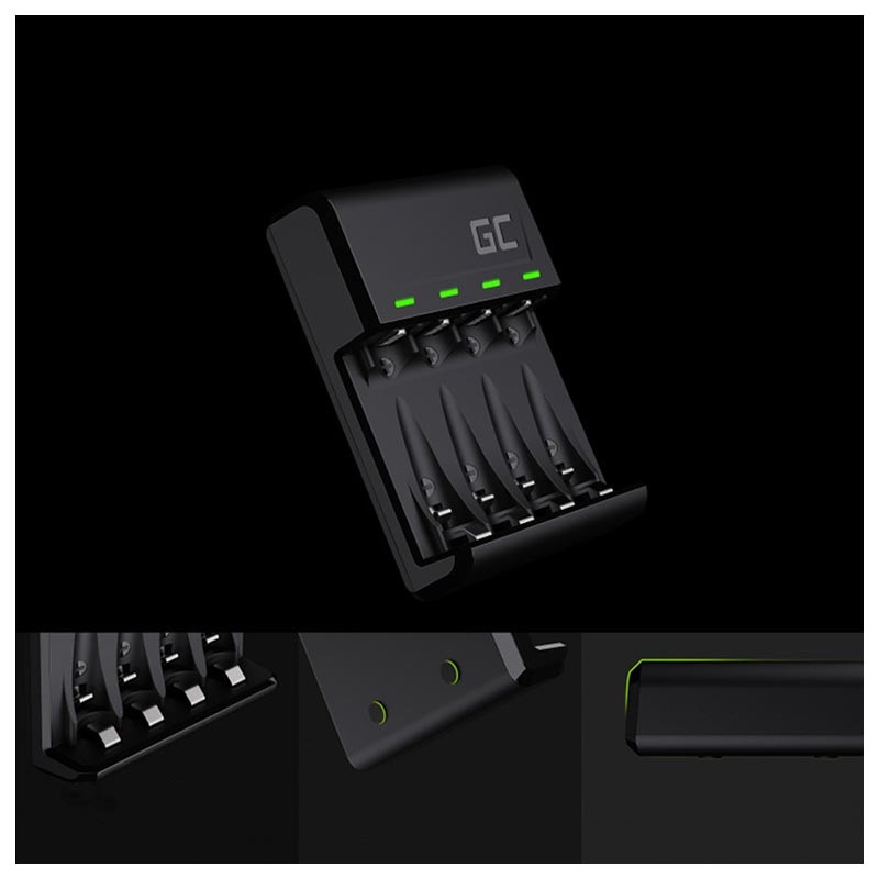 Carregador de Pilhas Green Cell VitalCharger com 4x 800mAh AAA Pilhas Recarregáveis - USB Tipo-C, Micro USB, AAA/AA