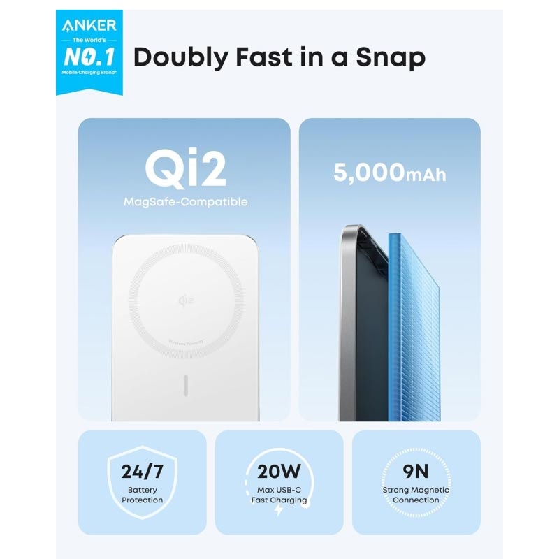 O Anker Nano Magnetic Power Bank é uma solução de carregamento fina e leve, concebida para smartphones modernos. Com carregamento magnético compatível com Qi2 e um corpo compacto, fixa-se com segurança ao seu telemóvel e fornece energia fiável em qualquer lugar. Combinando carregamento sem fios rápido, saída com fio USB-C e funcionalidades de segurança avançadas, é ideal para uso diário, deslocações e viagens, quando precisa de bateria extra sem volume adicional.