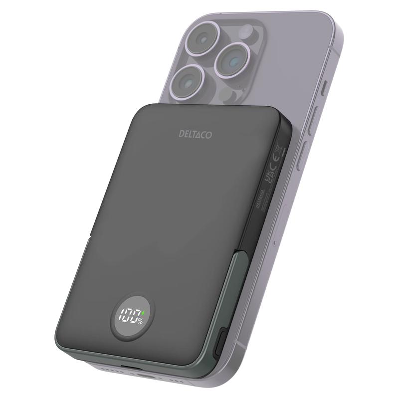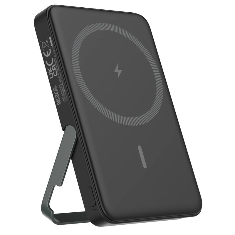 Carregador portátil magnético sem fios Deltaco de 5000mAh com suporte - Carregador portátil USB-C PD de 20 W