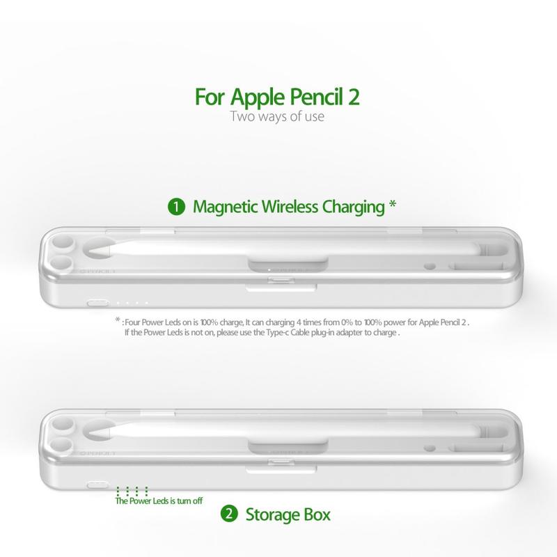 Carregador portátil sem fios 2 em 1 para Apple Pencil (2ª geração) / (1ª geração) Caixa de carregamento sem fios / com fios com bateria incorporada
