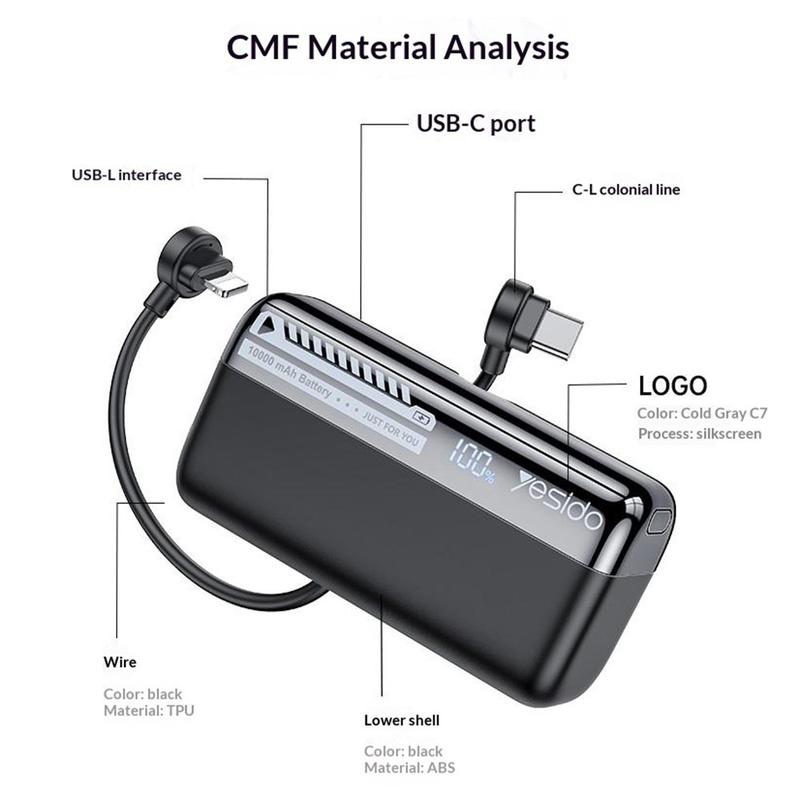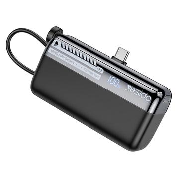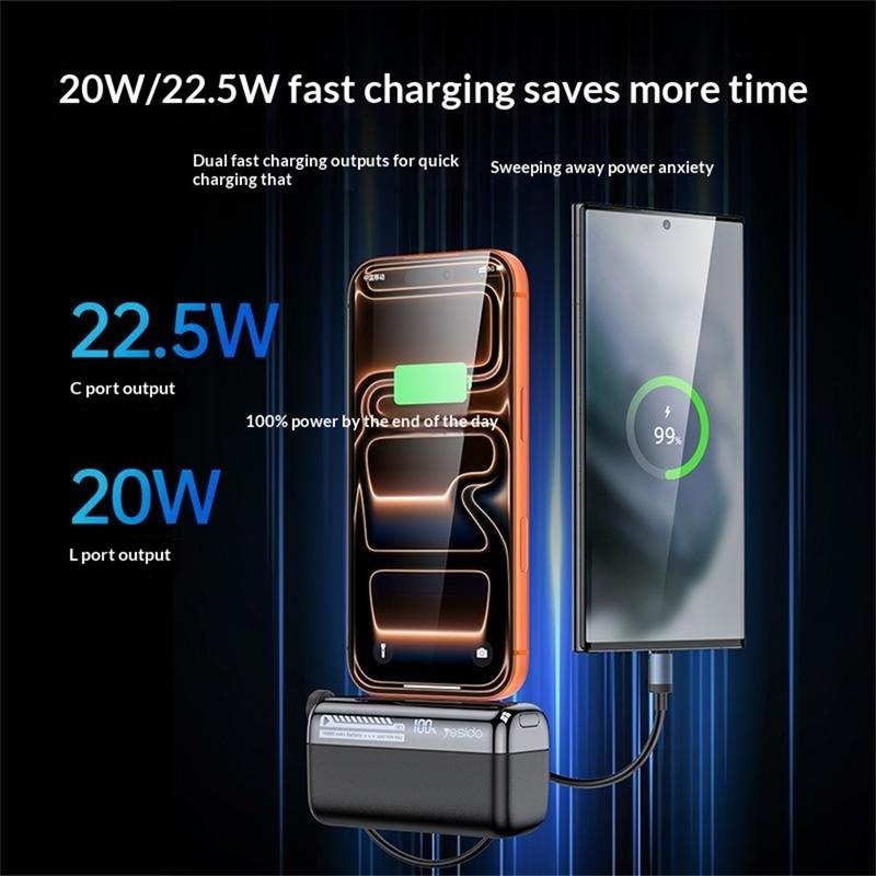 Carregador portátil Yesido YP99 de 10000mAh com carregamento rápido de 22,5 W, cabo USB-C para Lightning integrado e ecrã digital