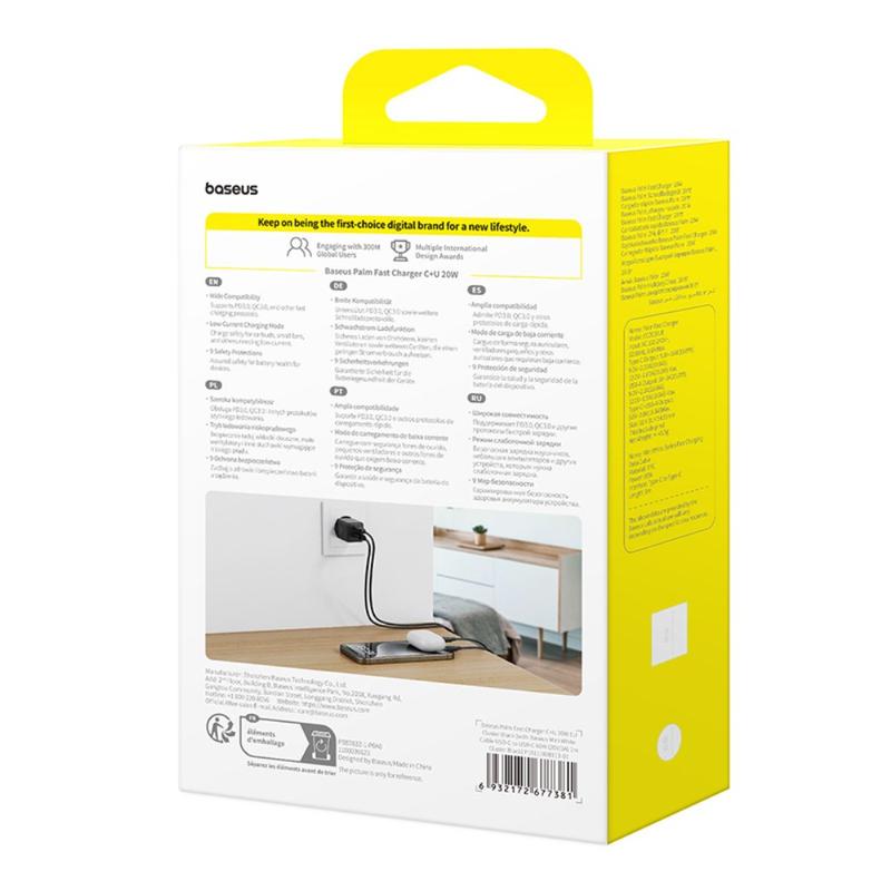 Carregador rápido Baseus Palm 20W com cabo Type-C 60W - USB-C, USB-C, ficha UE