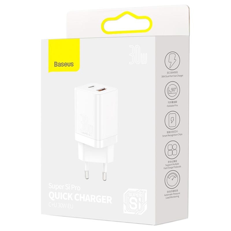 Carregador Rápido Baseus Super Si Pro 30W - USB-C, USB-A - Branco