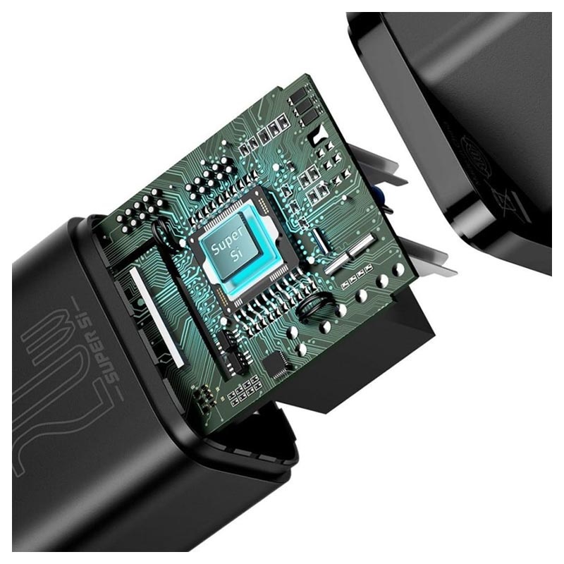 Pequeno e leve, este carregador rápido Super Si da Baseus manterá seu dispositivo totalmente carregado. A tecnologia Super Si black melhora a velocidade do carregador, e permite reduzir o seu tamanho, para que possa ser menor, o que o ajuda a operar com segurança em condições de alta temperatura. Acelere o tempo de carregamento em 3 vezes com este carregador rápido; o seu dispositivo será carregado em cerca de 50% em 30 minutos.