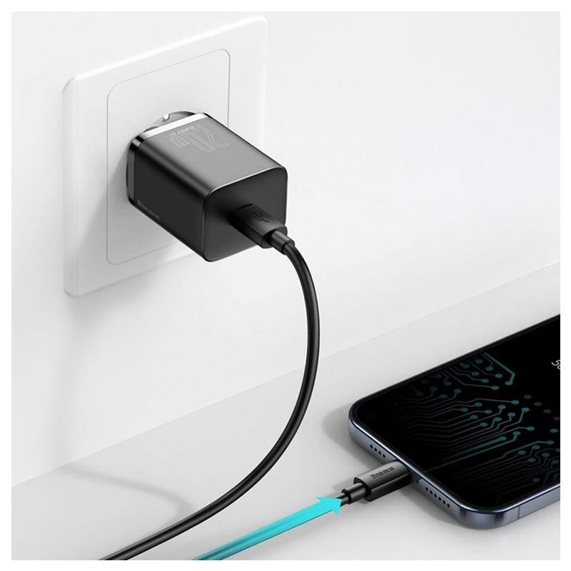 Carregador Rápido Baseus Super Si com Cabo USB-C / Lightning e Fornecimento de Energia - 20W, Tomada UE