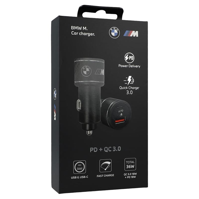 Carregador Rápido de Carro BMW M Edition com USB-C PD, USB-A QC3.0 - 36W