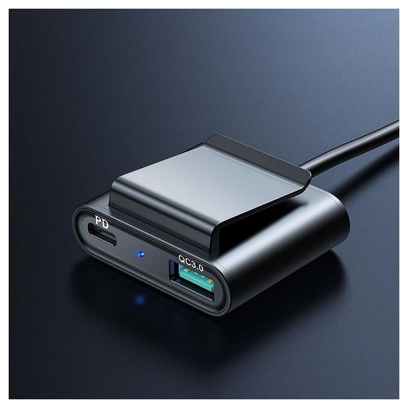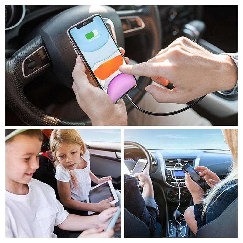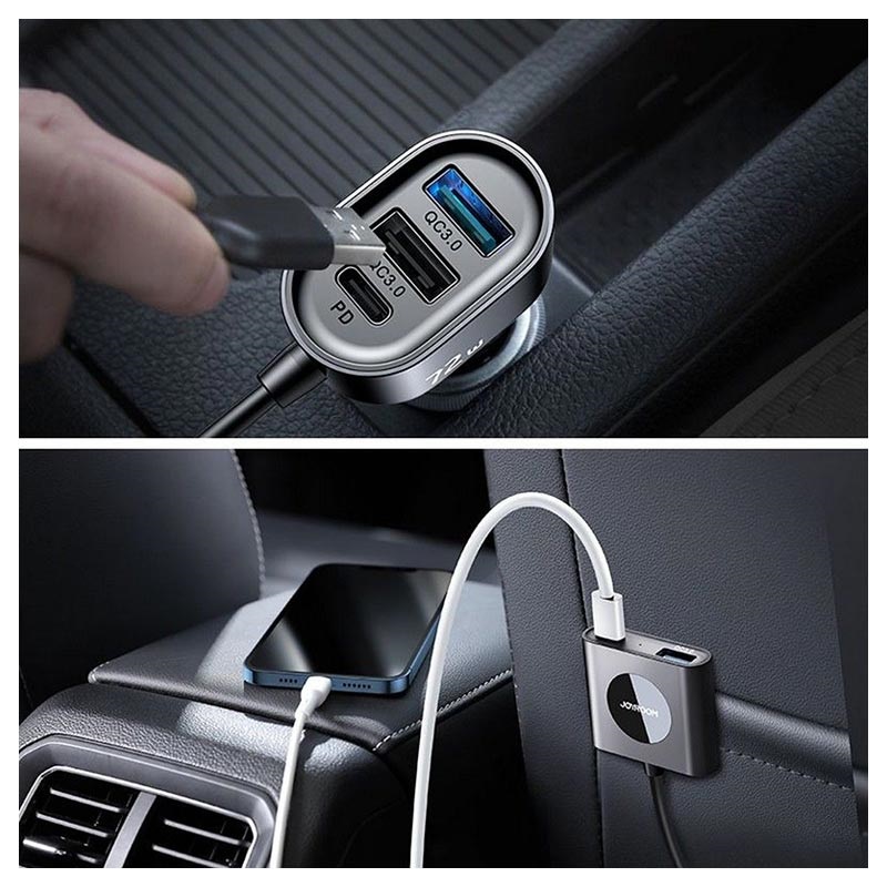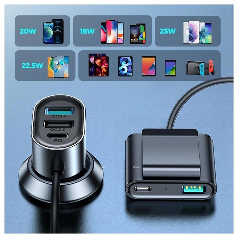 - Carregador rápido Joyroom JR-CL05 com um cabo extensível para os passageiros do banco de trás