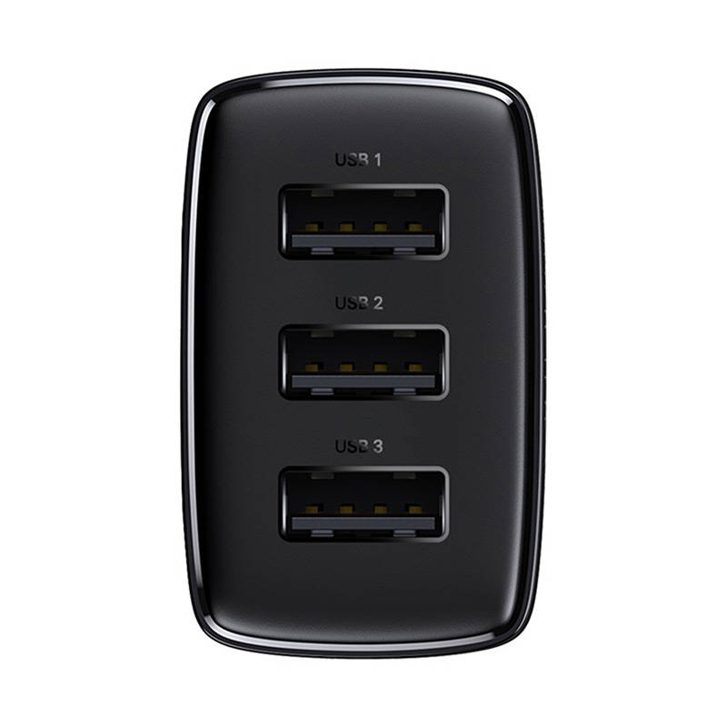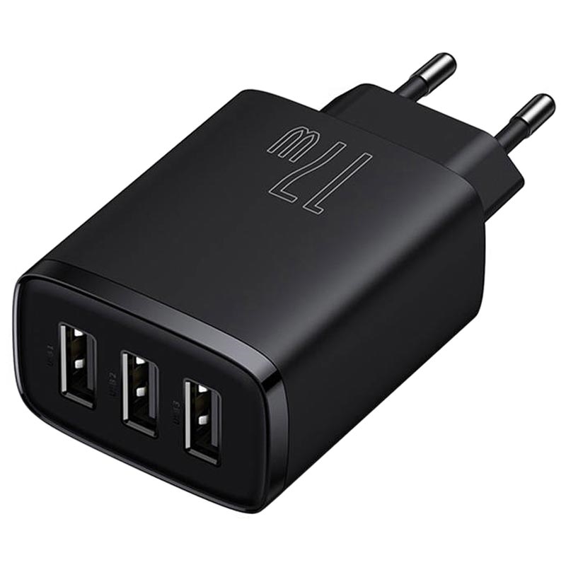 Carregador Rápido Baseus Compact, 3x USB, 17W (Preto)