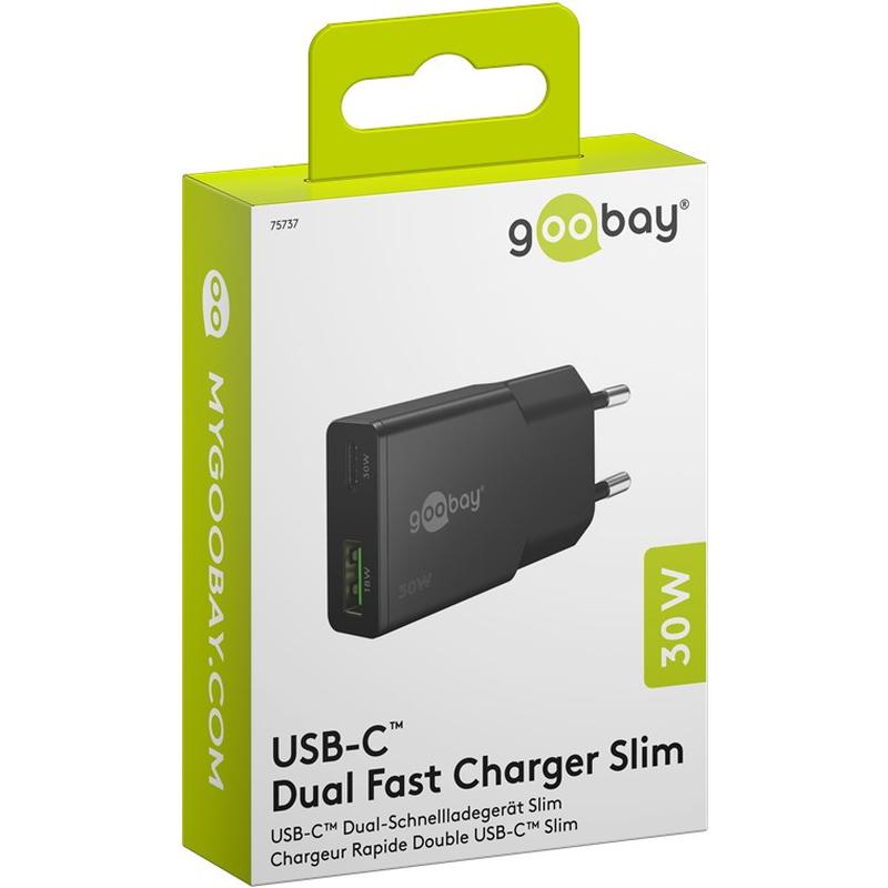 Carregador rápido duplo Goobay Slim USB-C PD GaN 30W - Carregamento rápido, design fino, máxima conveniência