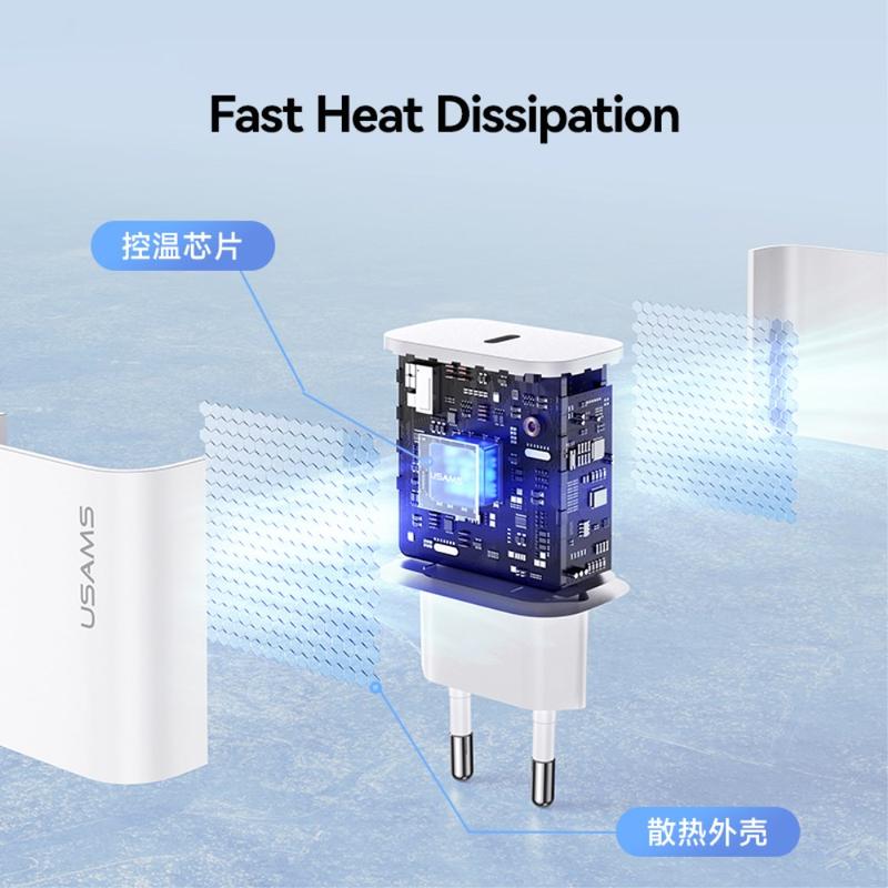 Actualize para o carregador rápido USAMS CC226 20W PD - compacto, potente e concebido para um carregamento seguro e de alta velocidade!