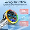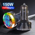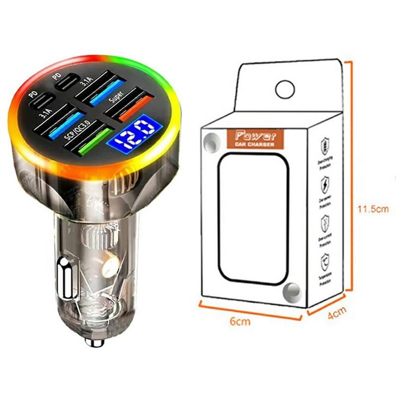 Carregador portátil de 6 portas para automóvel 150W - Adaptador de carregamento rápido com PD e QC3.0, ecrã de tensão, luz LED, suporte para vários dispositivos - 2 portas USB-C, 4 portas USB-A