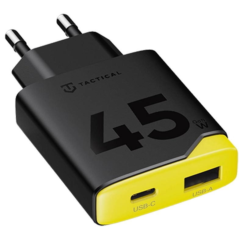 Carregador rápido Tactical Minimi 45W CA GaN - Carregador de parede com duas portas USB-C e USB-A com proteção de 4 camadas