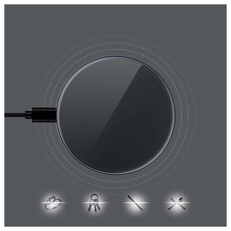 Deteção de objectos estranhos. O carregador sem fios deteta imediatamente quaisquer objectos desconhecidos como chaves, canetas, jóias, etc., e pára o processo de carregamento para evitar o sobreaquecimento e para manter os seus telefones caros em segurança.