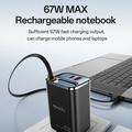 - Potência de carregamento rápido de 67 W - Proporciona um carregamento rápido através do cabo tipo C retrátil incorporado, garantindo um rápido aumento de energia para smartphones, tablets e outros dispositivos alimentados por USB.