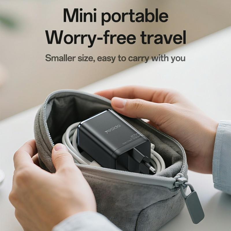 Carregue de forma mais inteligente e rápida com o carregador rápido YESIDO YC100 67W GaN, uma solução compacta e eficiente concebida para dispositivos modernos. Equipado com duas portas, tecnologia avançada de nitreto de gálio (GaN) e um cabo retrátil incorporado, combina potência, conveniência e segurança - perfeito para utilização em casa, no escritório ou em viagem.
