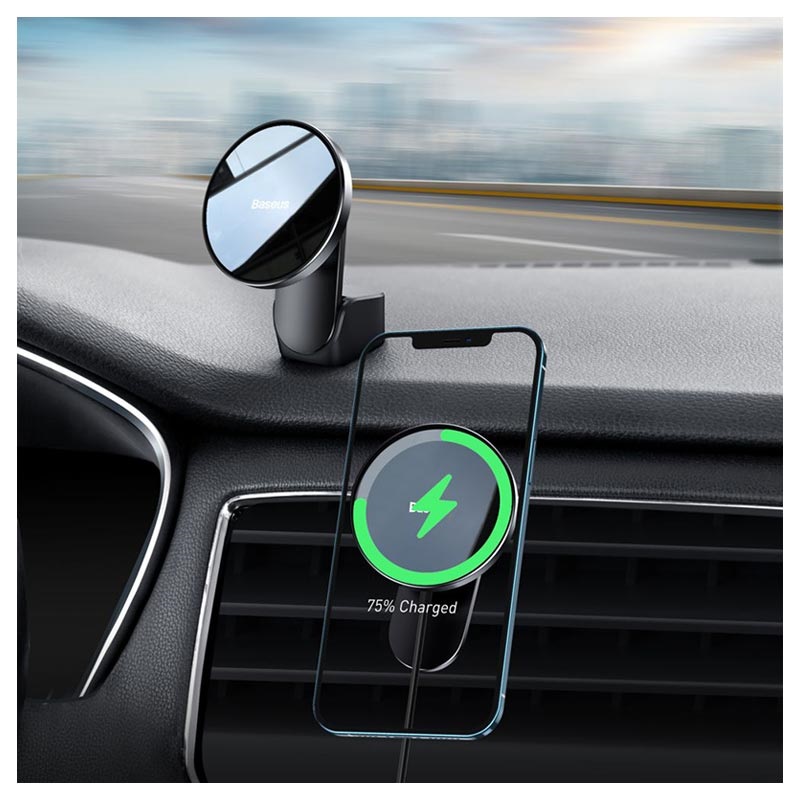 Carregador Sem Fios Magnético / Suporte de Carro Baseus Big Energy para iPhone 16, iPhone 16 Plus, iPhone 16 Pro, iPhone 16 Pro Max, iPhone 15, iPhone 15 Plus, iPhone 15 Pro, iPhone 15 Pro Max, iPhone 14, iPhone 14 Plus, iPhone 14 Pro, iPhone 14 Pro Max, iPhone 13, iPhone 13 Mini, iPhone 13 Pro, iPhone 13 Pro Max, iPhone 12, iPhone 12 Pro, iPhone 12 Pro Max, iPhone 12 Mini - Suporte de Grelha de Ventilação e Tablier
