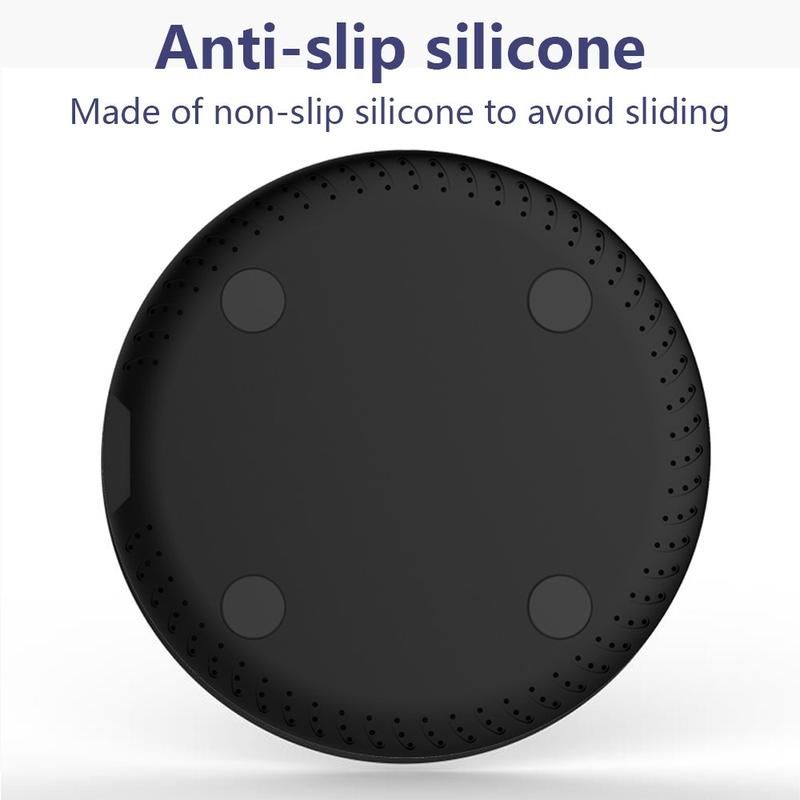 • Carregador sem fios Q18 de forma redonda Almofada de carregamento de secretária com carregamento rápido de 15 W - Preto