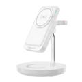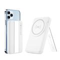 A estação de carregamento magnético sem fios 5 em 1 é um carregador versátil e prático que permite carregar até 3 dispositivos em simultâneo. A sua compatibilidade com MagSafe e telemóveis que suportam o carregamento sem fios garante um carregamento perfeito de uma variedade de modelos de dispositivos. A porta USB-A incorporada proporciona uma opção de carregamento adicional. Além disso, a estação dispõe de um banco de potência amovível de 5000 mAh, garantindo independência e mobilidade em qualquer situação. O banco de potência também inclui um indicador de carga, aberturas para dissipação da temperatura durante o carregamento sem fios e uma porta USB-C para carregamento rápido de 20 W. Além disso, a power bank está equipada com um prático pé que funciona como suporte enquanto carrega o telemóvel, aumentando a sua funcionalidade.