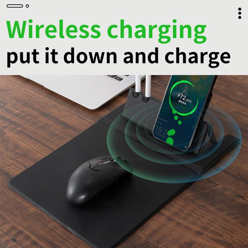 Carregador sem fios de 15W com suporte para caneta e tapete de rato dobrável - Preto