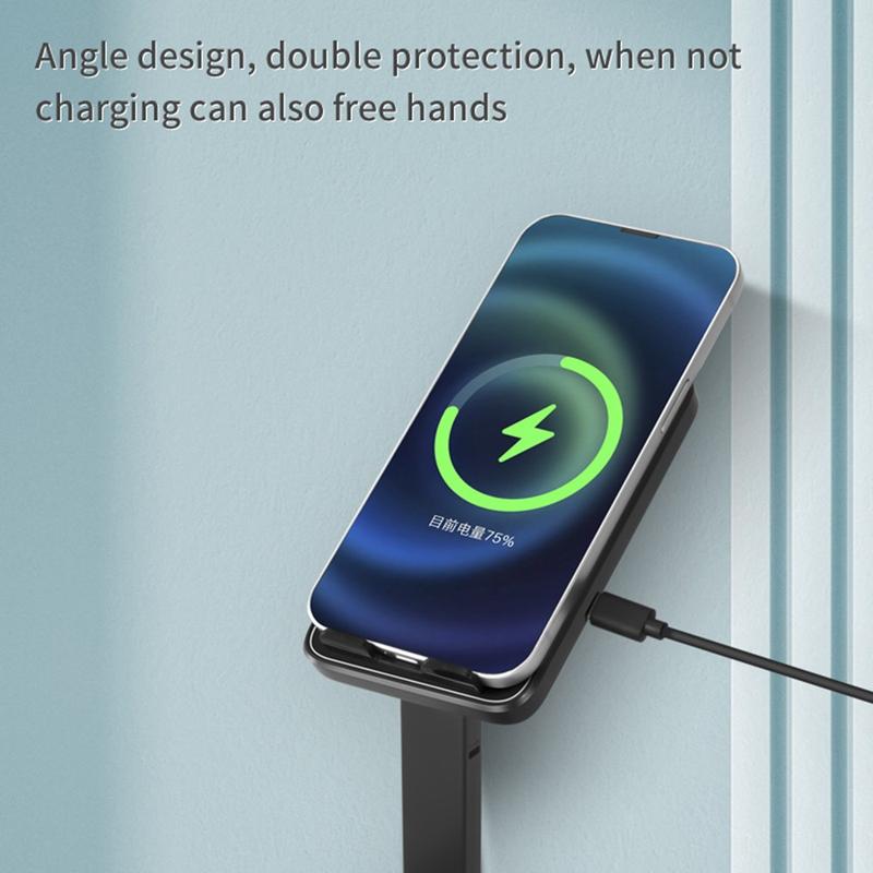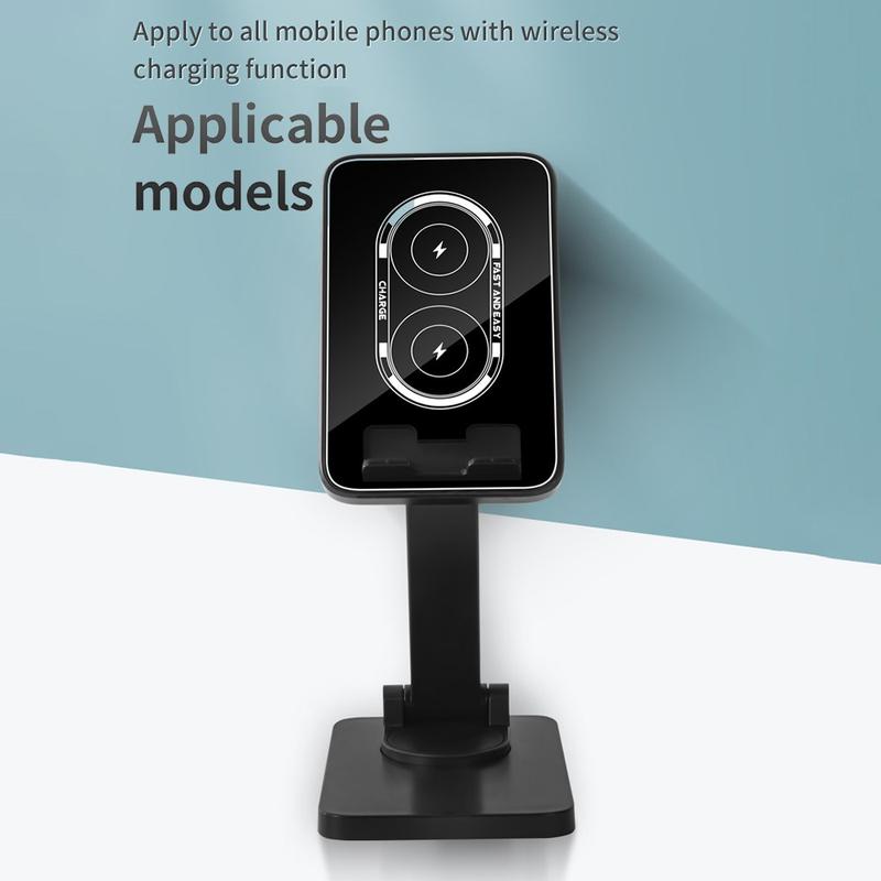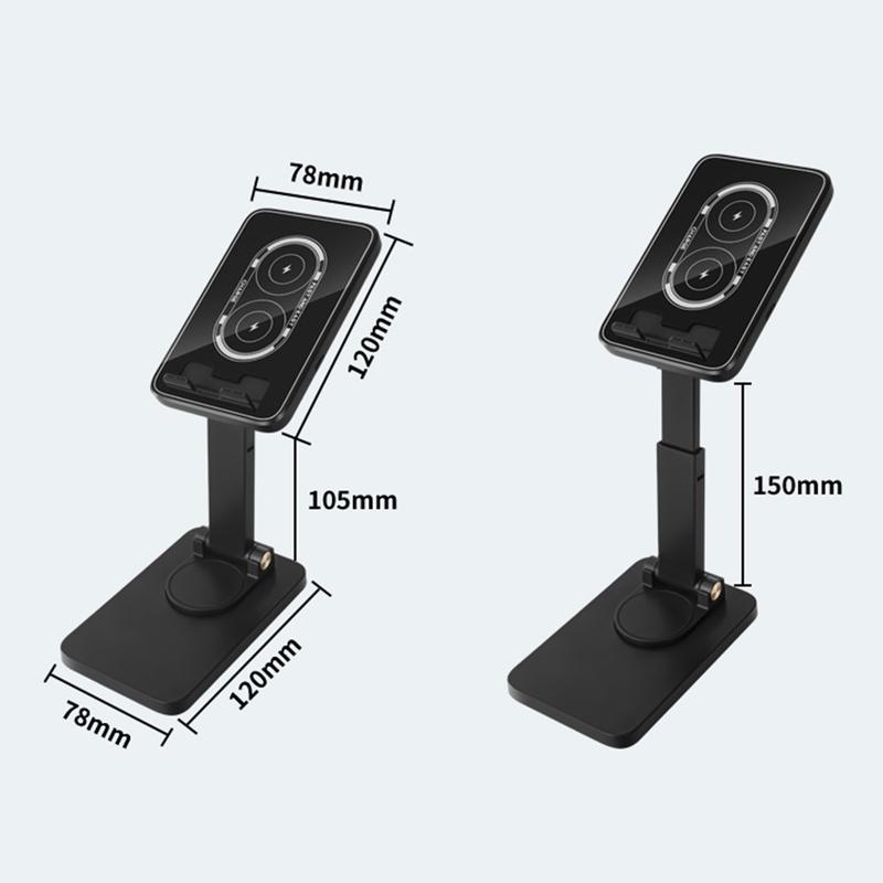 Carregador sem fios H12 15W Suporte de telefone de secretária dobrável Suporte de carregamento portátil para transmissão em direto no ambiente de trabalho