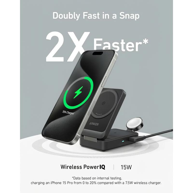 - 1 x Estação de carregamento sem fios Anker MagGo (3 em 1, dobrável)