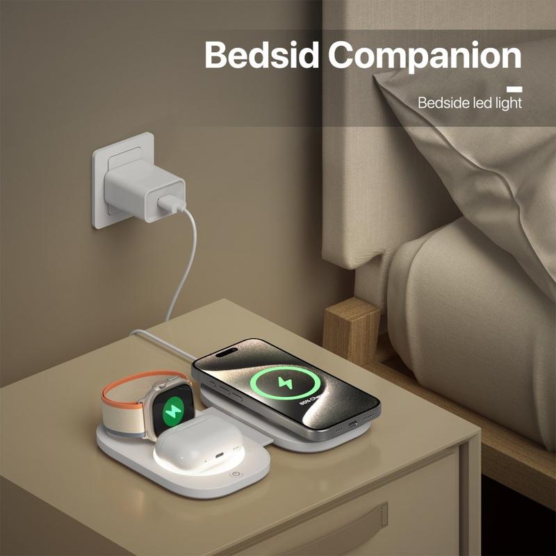 - Carregamento sem fios 3 em 1 rápido: A base de carregamento magnético sem fios de 15W suporta o carregamento rápido das séries iPhone 17-12 e de outros telemóveis compatíveis com Qi na horizontal, juntamente com 3 W para auriculares e 2 W para o Apple Watch, proporcionando soluções de carregamento abrangentes.
