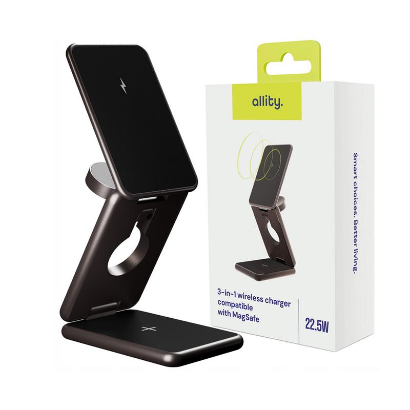 Allity AWC-230-225WMS Carregador sem fios 3 em 1 MagSafe 22.5W - Base dobrável para iPhone, Apple Watch e AirPods