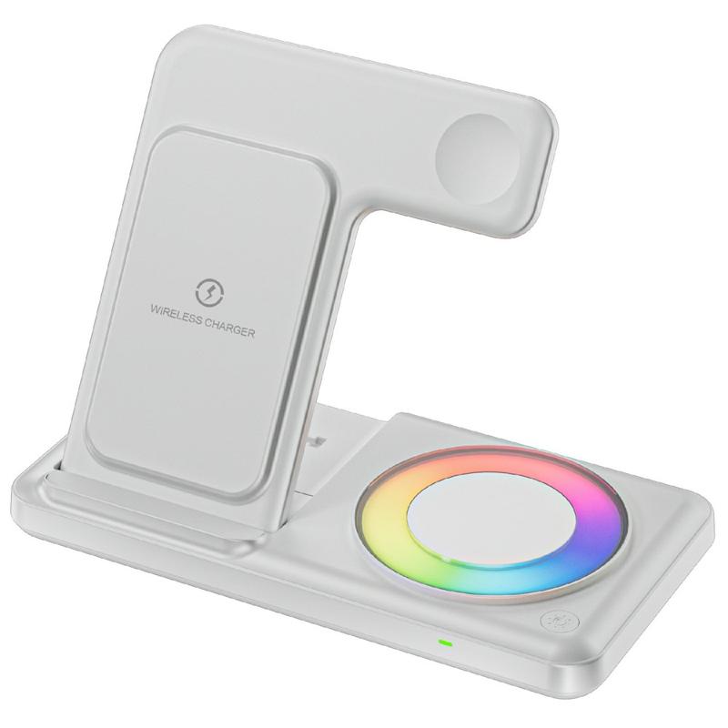 Carregador sem fios dobrável Q50D 4 em 1 - Estação de carregamento rápido de 15W com luz ambiente RGB
