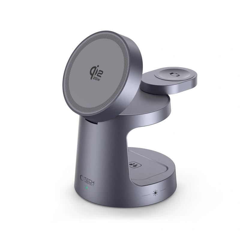 Tech-Protect QI2.2-25W-A48 Carregador sem fios magnético MagSafe 3 em 1 com suporte dobrável