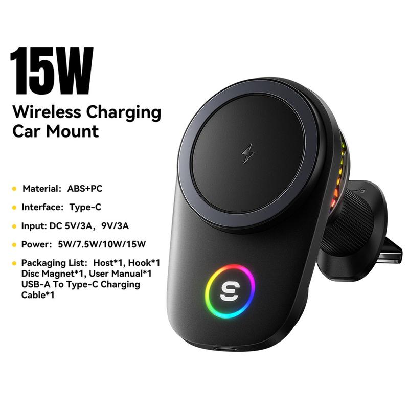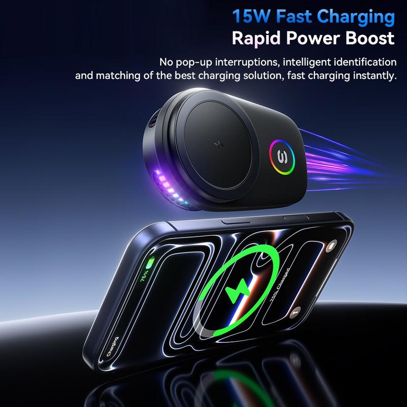 Mantenha o seu telemóvel carregado, visível e firmemente fixo com o carregador magnético sem fios para automóvel ESSAGER de 15W. Concebido para condutores que procuram uma configuração mais organizada e prática, este suporte para a saída de ar combina carregamento sem fios rápido, fixação magnética forte e refrigeração ativa num único acessório compacto. A luz RGB integrada confere-lhe um toque moderno, enquanto a rotação de 90° facilita a alternância entre a orientação vertical e horizontal para navegação, chamadas ou controlo de música.