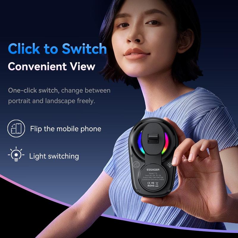 Se pretende uma configuração de condução mais prática, este carregador ESSAGER é uma escolha fácil. Combina uma montagem segura, carregamento sem fios rápido, refrigeração ativa e iluminação elegante num único acessório compacto, tornando cada viagem mais prática e confortável.