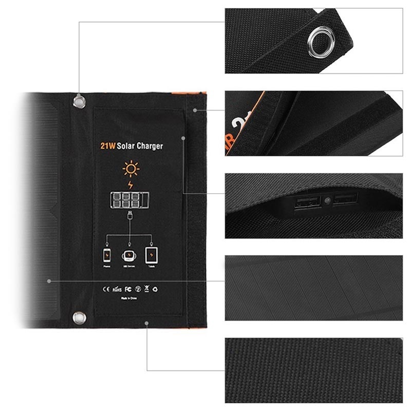 Carregador Solar Dobrável com Duas Portas USB - 21W, 3.5A
