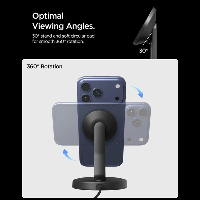 O Spigen EF151MS combina um forte alinhamento magnético, um ângulo de visualização confortável e carregamento sem fios estável num único dispositivo compacto. Permite-lhe carregar e usar o seu telemóvel simultaneamente sem precisar de o segurar, tornando-o prático tanto para o trabalho como para o lazer. Com proteções de segurança integradas e um cabo USB-C durável incluído, oferece carregamento confiável num design limpo e moderno.