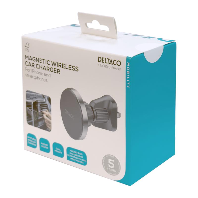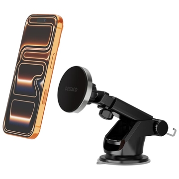 Mantenha o seu telemóvel carregado e à vista enquanto conduz com o carregador sem fios removível para automóvel da Deltaco. Concebido para oferecer comodidade e flexibilidade, este carregador compatível com Qi2 proporciona um carregamento sem fios de até 15W para dispositivos compatíveis, mantendo o seu telemóvel firmemente no lugar graças a um íman incorporado.